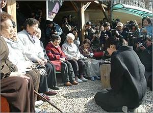 李成延穿著黑色風(fēng)衣,沒有化妝,象是沒有整理過的頭發(fā)隨意的扎在后面,一臉的疲倦和滄桑表明這幾天她已經(jīng)心力憔悴。起初老人們對(duì)李成延的態(tài)度還比較溫和,但是李成延除了道歉而沒有提起寫真底片和處理方法,老人們開始不接受李成延的道歉。表示除非李成延拿著底片和膠卷當(dāng)場(chǎng)在她們面前燒毀,不然她們將永遠(yuǎn)不會(huì)接受她的道歉。老人們的情緒很激動(dòng)。一些老人質(zhì)問李成延這樣的謝罪是不是真心的,也有一些老人也表示出了同情,表示:“出現(xiàn)這樣后果只能怪你李成延不是生在別的國家而是生在韓國,你既然來了我們還是會(huì)原諒你的,因?yàn)槟阋彩俏覀兺幻褡澹捕际俏覀兊暮⒆。?/P>