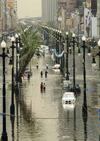 路易斯安那州州長(zhǎng)凱瑟琳在新聞發(fā)布會(huì)上說(shuō):“受災(zāi)情況遠(yuǎn)遠(yuǎn)超過(guò)我們最壞的估計(jì)!痹趧P瑟琳講話(huà)前不久,新奧爾良的防洪大堤被沖垮,龐恰特雷恩湖的水涌向并幾乎淹沒(méi)這個(gè)城市。
