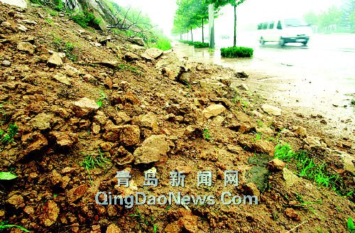 sp; 昨日上午11時許,記者趕到遼陽西路與勁松三路路口附近看到,浮山坡下一處10多米的人行道被塌倒的沙石全部蓋。ㄉ蠄D),山上流下3米多寬的水流夾著沙石形成泥石流,不斷涌到路邊。記者沿遼陽西路向東走了近2公里發(fā)現(xiàn),沿路山坡有七處這樣的塌方和泥石流缺口。據(jù)嶗山環(huán)衛(wèi)人員介紹,因浮山北坡植被較少,遇到連續(xù)降雨,山上的雨水就夾帶著泥沙沖下山坡,將路邊的山體沖倒。相關(guān)部門調(diào)集近百人集中清理堵在人行道上的沙石,至下午3時許,環(huán)衛(wèi)工人共清理路面上的石塊和泥沙近百噸。記者趙健鵬攝影報道     |