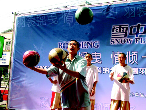 街頭籃球“秀”的是個(gè)性,每個(gè)街球小子都有自己的拿手絕活。身高1.82米的隊(duì)員龍龍能在3.05米的籃框上大力灌籃;隊(duì)員騰騰能同時(shí)拍著3個(gè)籃球運(yùn)球前進(jìn);小個(gè)子徐坤能倒立拍球;后衛(wèi)于江最拿手的運(yùn)球動(dòng)作是“大鵬展翅”;而戴著眼鏡的董鑫能夠連投7個(gè)“空心”三分球。劉少勇說(shuō),每個(gè)隊(duì)員都是憑著自己的“一技之長(zhǎng)”在球場(chǎng)上贏得喝彩。
