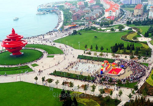 昨天,五四廣場精彩的文藝演出吸引了許多市民和游客。    李學(xué)亮攝    昨天,一群手持國旗的學(xué)生在五四廣場游覽。王群攝    國慶節(jié)的島城街頭,一位“老外”正在將美麗的畫面攝入鏡頭。王群攝