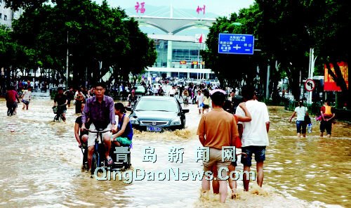 10月3日,福州火車站前的街道嚴(yán)重積水。受今年第19號臺風(fēng)“龍王”的外圍影響,10月2日中午起,福州市遭特大暴雨襲擊,城區(qū)及周邊縣市均出現(xiàn)內(nèi)澇和洪    水,交通無法正常運行,人們的正常生活受到影響。新華社數(shù)碼傳真     <<見3版     |