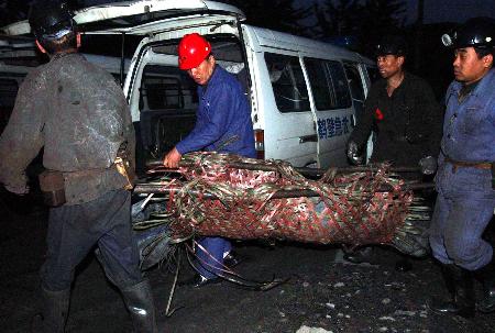 救援人員將遇難礦工遺體抬出礦井。 新華社記者岳月偉攝