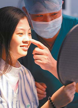 黑暗、聚光燈、麻醉劑、手術(shù)刀……32分鐘后,當(dāng)林小姐忐忑不安地拿起鏡子,鏡中那個(gè)看起來(lái)陌生而美麗的自己讓她驚喜不已,挺直而秀氣的鼻梁襯托的本來(lái)就嬌好的五官愈發(fā)靚麗,原來(lái)那個(gè)因?yàn)楸橇禾投B眼鏡都掛不住的“塌鼻梁”經(jīng)過(guò)半個(gè)多小時(shí)的手術(shù)后不復(fù)存在。雖然因?yàn)樽鲞@個(gè)隆鼻手術(shù)而放棄了黃金周出游計(jì)劃,但她