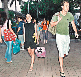 享受拍拖甜蜜生活的張柏芝,日前攜老外男友香港西貢出;,在碼頭人潮中,助理拿沖滑水板差點(diǎn)撞到一位老婆婆,