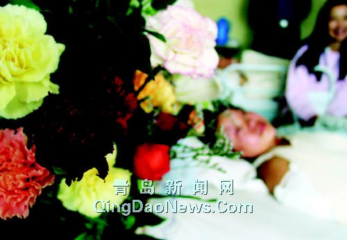 陳國(guó)英的病房里擺滿了鮮花,這些都是熱心市民這幾天送來(lái)的 |