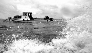 10月4日,在墨西哥港口城市韋拉克魯斯,一艘漁船試圖躲避“斯坦”卷起的風(fēng)浪。