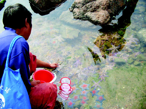 |    早報(bào)訊從早市上以每個(gè)三角錢的價(jià)格收購(gòu)一批海星,拿到棧橋等游客眾多的地方,搖身一變就成了能治關(guān)節(jié)炎的寶貝。昨天,一些正在蒙騙外地游客的小販被城管執(zhí)法人員取