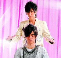 羅志祥和周杰倫是多年好友,“小豬”出前兩張 專輯時,羅志祥要靠自己,沒有向好友周董邀歌。出第三張專輯時,羅志祥父親去世,忙里忙外,忙得沒空打電話向周董邀歌,沒有想到,就在他痛失親人,心情最沮喪時,周董卻傳了簡訊給他,酷酷幾句話:“我?guī)湍銓懥艘皇赘,你聽聽看!?/P> 周董為小豬寫的歌,譜成《自我催眠》,這首情歌,可以療情傷,也可以當作痛失親人的歌。拍攝MV時,羅志祥還《自我催眠》,一會扮演“小豬”,一會把自己幻想成是“周董”,還模仿周董幾個招牌動作。姜玉景/聯(lián)