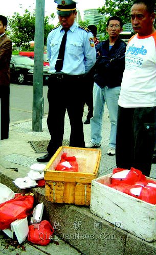 據(jù)了解,黃金周期間,市南城管行政執(zhí)法局的執(zhí)法人員分別在五四廣場、音樂廣場、火車站廣場、棧橋周邊共依法查處無證經(jīng)營商販的臟盒飯41箱。(王哲周玉香)