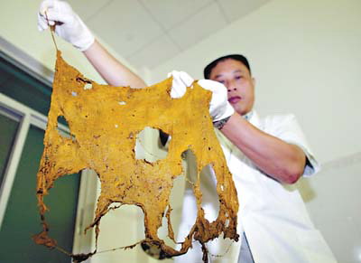 從萬(wàn)女士腹中取出的紗布已開始腐爛,露出了幾個(gè)大窟窿。楊勤攝