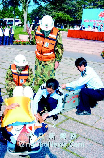 昨天,市旅游局、衛(wèi)生局和安監(jiān)局聯(lián)合舉辦的旅游突發(fā)公共事件應(yīng)急演練在小青島公園舉行。這次活動以旅游團隊食物中毒三級突發(fā)公共事件為情況設(shè)定,導(dǎo)游、游客和衛(wèi)生系 統(tǒng)工作人員迅速展開救援行動。傅學(xué)軍攝