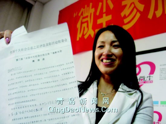 劉麗萍說:“‘微塵’能當(dāng)選,全是熱心市民和媒體的功勞,他們?cè)屛乙淮未胃袆?dòng)。我想通過早報(bào),向島城的所有‘微塵’和關(guān)注此次評(píng)選的市民說聲感謝!