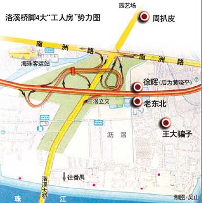 這種以介紹工作為由,把人騙到工地做勞工,從中非法收取傭金的幫派組織,被稱做“工人房”。僅在廣州海珠區(qū)洛溪橋腳附近就有4家。據(jù)記者調(diào)查得知,天河客運站、東圃、五仙橋、新市等地也存在這樣的組織。到今年秋天,深圳、佛山、番禺等地紛紛插上“工人房”的標桿。每天至少有200個來廣州打工者被騙賣到工地。有些“工人房”還在從事拐賣婦女賣淫活動。