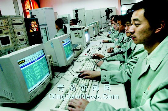 昨天,青島測(cè)控站的技術(shù)人員在觀測(cè)著神州六號(hào)的一舉一動(dòng) |