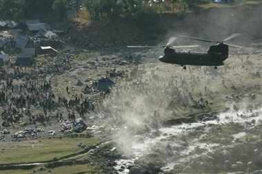 12日,巴基斯坦救援飛機(jī)達(dá)到西北部小鎮(zhèn)巴拉科特。