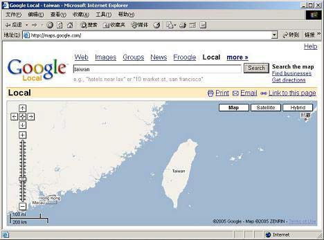 據(jù)了解,現(xiàn)在到網(wǎng)址上輸入Taiwan一字,出現(xiàn)的臺灣地圖之左上角已不見“臺灣,中國的一省”字句,變成可以移動地圖的上下左右箭頭。