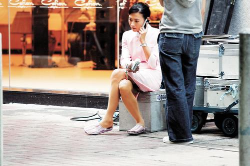 6日中午2時(shí)許,著一身粉紅護(hù)士服的柏芝與前緋聞男友陳小春出現(xiàn)在灣仔,為新片《我愛(ài)女人購(gòu)物狂》(暫名)拍外景。二人聊個(gè)不停,手持兩盒蛋撻的柏芝跟飾演富豪的小春在燈飾店門(mén)外走來(lái)走去,然后一輛車(chē)牌“88”的奔馳轎車(chē)駛到,小春罵完司機(jī)又要?jiǎng)邮职嵋粋(gè)木柜上車(chē),相當(dāng)辛苦。反觀柏芝就以文戲?yàn)橹鳎菹r(shí)間除了逛店購(gòu)物外,也不介意穿短裙坐在路邊聊電話(huà)。向來(lái)豪邁的柏芝雖然坐得小心翼翼,但仍不慎露出黑色的絲襪頭。