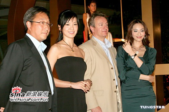 吳佩慈 吳佩慈 林熙蕾 合影 卡地亞一連三天展示的珠寶系列, 在香港中環(huán)IFC舉行派對(duì),特別邀請(qǐng)到由臺(tái)灣來(lái)的吳佩慈及林熙蕾出席,吳佩慈穿上一襲超低胸綠色晚裝,身材呼之欲出,林熙蕾雖然也穿上黑色tube top裙,但風(fēng)頭被吳佩慈搶去,連她也笑道:“吳佩慈非常sexy,我都不敢望她。”(tungstar/圖)
