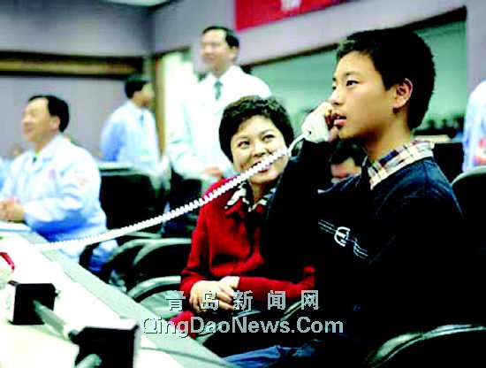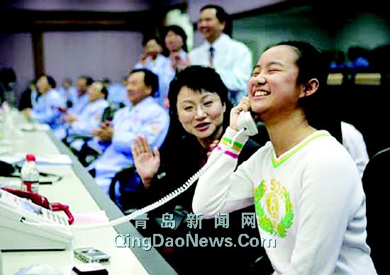 12日21時(shí)32分,航天員家屬費(fèi)俊龍的妻子王潔,兒子費(fèi)迪;聶海勝的妻子聶捷林,女兒聶天翔在北京航天飛行控制中心,通過飛船天地話音通訊系統(tǒng),與乘坐“神舟”六號(hào)飛船在太空飛行的航天員進(jìn)行實(shí)時(shí)通話。21時(shí)39分,天地通話結(jié)束。