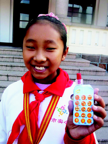 據(jù)介紹,這位只有10歲的女孩已經(jīng)相繼發(fā)明了盲人手機、盲人電話、盲人微波爐、盲人皮鞋等系列作品。說起她的第一個發(fā)明,那是2002年的事了,當時她才7歲!拔壹揖妥≡诿ばE赃叄吹矫と烁绺缃憬闵罘浅2环奖,我就想為他們發(fā)明些他們能用的東西!睘榱俗屪约旱脑O計更實用,她和媽媽幾乎每周都去一趟盲校,向盲童們學習盲文,在發(fā)明的過程中,她還和一個15歲的盲女成了好朋友。經(jīng)無數(shù)次修改,盲人手機誕生了。手機上有方便觸摸的盲文數(shù)字鍵,有觸摸式的圖形功能鍵,還增加了語音提示系統(tǒng)和收音機功能。