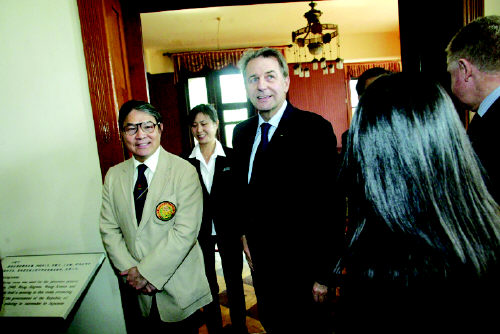 能和國際奧委會主席合張影,會成為許多人一生的紀念。昨天,只要有人提出要合影,羅格總會微笑著點頭答應,并讓攝影師把他那和藹的微笑定格在鏡頭里。在迎賓館,當一名市民拿出一疊明信片讓羅格簽名時,羅格掏出筆,不厭其煩地仔細把名字簽了一遍又一遍。即將離開迎賓館時,一名工作人員拿出一本留言簿希望羅格能寫點什么,羅格想了想,一筆一劃地用漢字寫下了自己的名字———羅格。(撰稿攝影