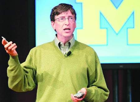 12日,蓋茨來到密歇根大學(xué)向在場的1500多名計算機科學(xué)與工程系的學(xué)生介紹未來的手機技術(shù)。