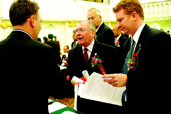 昨天上午,由市政府主辦的國(guó)際律師聯(lián)盟組織2005年年會(huì)在海天大酒店舉行,這是我市有史以來(lái)主辦的規(guī)?涨啊⒁(guī)格最高的國(guó)際性律師組織盛會(huì)。參加盛會(huì)的30名律師分別來(lái)自德國(guó)、法國(guó)、英國(guó)、澳大利亞、新加坡、印度、馬來(lái)西亞等國(guó)家和地區(qū)的22家律師事務(wù)所,他們昨天被聘為青島市政府招商大使,并得到了由市長(zhǎng)簽署的證書。他們回國(guó)后,將以國(guó)際律師聯(lián)盟為橋梁,向各國(guó)客戶提供青島投資環(huán)境和項(xiàng)目的介紹,拓寬青島市招商引資的渠道。
