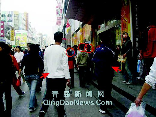 一個(gè)多小時(shí)過(guò)去了,并沒(méi)發(fā)現(xiàn)小偷身影。正當(dāng)大家失望之際,女網(wǎng)友“原上草”報(bào)告說(shuō):“有二男一女,三個(gè)人站在步行街麥當(dāng)勞附近,舉止可疑,快來(lái)增援。”另外兩個(gè)小組接到信息后,立即向麥當(dāng)勞趕去。記者隨同網(wǎng)友到達(dá)臺(tái)東三路時(shí),發(fā)現(xiàn)這三個(gè)小偷已經(jīng)盯上了一位將掛包背在身后的男子。