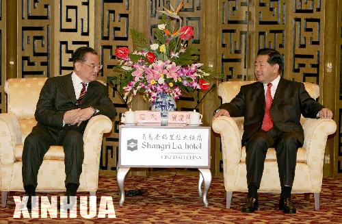 bsp; 本報(bào)訊 中共中央政治局常委、全國政協(xié)主席賈慶林昨日在青島香格里拉大飯店會見了中國國民黨榮譽(yù)主席連戰(zhàn)一行。