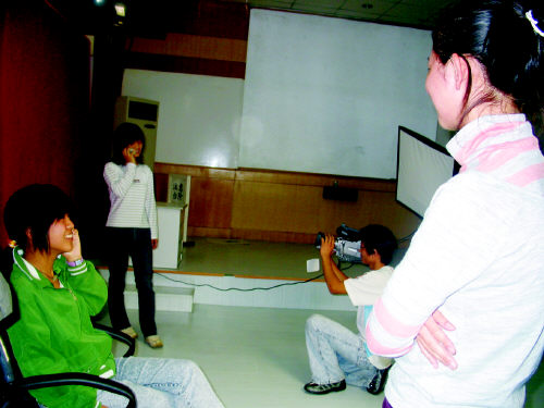 記者了解到,柳茵和方媛媛做搭檔可謂“珠聯(lián)璧合”,兩人都是海大海鷗劇社的成員,以前在校園話劇中擔(dān)任過(guò)角色,柳茵文字功底強(qiáng),一個(gè)月就拿出了3萬(wàn)字的《春夏秋冬》的劇本;而方媛媛是教育技術(shù)專業(yè)的學(xué)生,學(xué)過(guò)攝影攝像課程,還有過(guò)拍攝20分鐘DV劇的經(jīng)驗(yàn),當(dāng)仁不讓地?fù)?dān)任了“導(dǎo)演”角色。想法有了,劇本、導(dǎo)演也都有了,下一步就要招演員了。