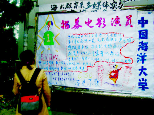 | 招募演員的海報(bào)貼在了學(xué)校的布告欄上 |