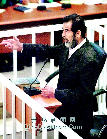 | 薩達(dá)姆昨天在接受審判時慷慨陳詞本版圖片均為新華社發(fā) |