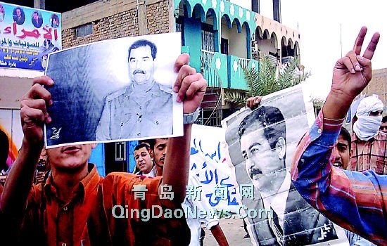 | 在薩達(dá)姆的出生地提克里特,人們昨天走上街頭游行支持薩達(dá)姆 |