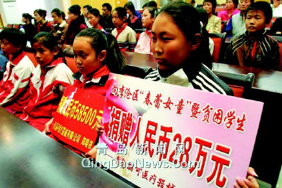 昨日,李滄區(qū)117名貧困學(xué)生獲得了2005學(xué)年學(xué)習(xí)資助及每月二百元的生活費(fèi)。資助這些貧困學(xué)生的33.85萬(wàn)元是由韓國(guó)企業(yè)家鄭曉權(quán)個(gè)人及他的企業(yè)青島麗可醫(yī)療器械有限公 司共同提供的。臧磊攝