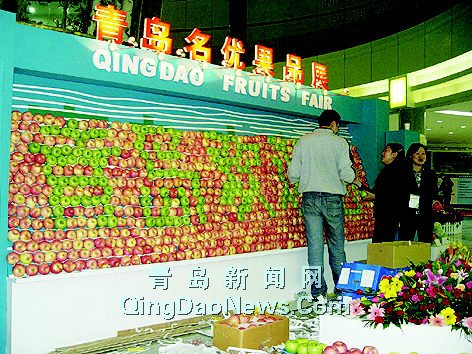 | 蘋果擺成的“青島歡迎你”。劉蘭星攝 |