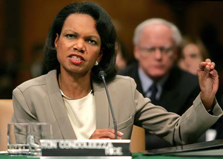 據(jù)俄羅斯《真理報》報道,日前,美國國務卿賴斯在出席美國參議院國際關系委員會中東局勢聽