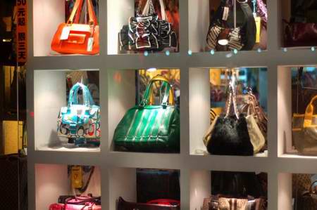 漂亮的時裝包正在打折,店里擠滿了“淘寶”的美女