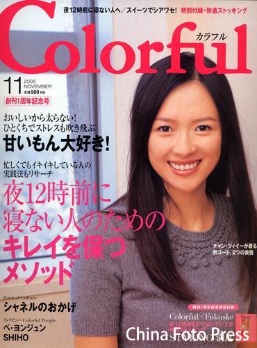 2005年10月21日,日本,在剛剛出版的日本綜合類女性雜志《Colorful》11月號(hào)(創(chuàng)刊1周年紀(jì)念號(hào)),封面刊登了中國(guó)女明星章子怡的秋裝照片,并在內(nèi)頁(yè)用兩個(gè)整頁(yè),刊登了章子怡身穿秋季大衣的照片。Huaren/文并圖