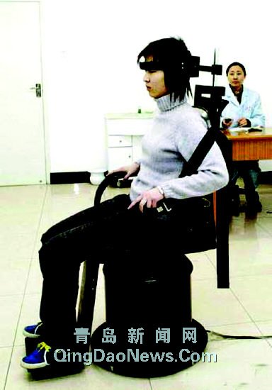 | 學(xué)員劉世蓉在做眩暈測試 |