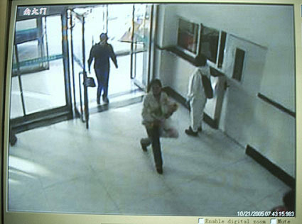 ![殘疾女嬰被棄醫(yī)院衛(wèi)生間 監(jiān)控錄像鎖定棄嬰女子]() 7時44分,走進女廁。