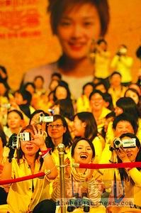 發(fā)布會還沒開始,就有記者表示,這樣的新人簽約會可謂“前無古人”,一張唱片未出的李宇春竟吸引了接近400歌迷到場。此次太合麥田將李宇春簽約會安排在北京飯店最大的宴會廳,一來是為簽到這位人氣唱將而大擺排場,二來為容納陣容強大的玉米們。簽約會前兩天,太麥就在某網(wǎng)站配合下召集玉米前來參加發(fā)布會,結(jié)果到入場的時候,不少沒有報名的玉米也紛紛趕來,太合麥田沒有因此將其拒之門外,而是敞開大門將所有到場玉米都安排在一個固定的區(qū)域。隨著簽約會的進行,玉米團們也隨著李宇春的出現(xiàn)、以及嘉賓口中念到的“李宇春”而興奮,諸如“宇春亞東手牽手,玉米永遠跟你走”、“玉米不怕累,小宇麥田最珍貴”等口號被玉米們喊出,讓場內(nèi)平添幾分輕松的氣氛。