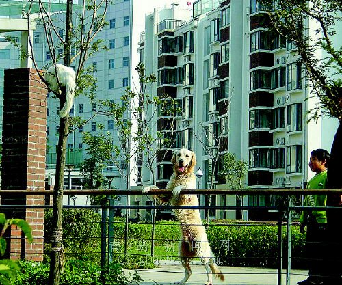樓窗臺(tái)扔了出去,因?yàn)樗齽倓傎I回一只巡回犬。記者了解到,市民家中“狗占貓穴”的現(xiàn)象日益增多。