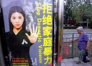 “拒絕家庭暴力”的公益廣告牌在許多城市中隨處可見(資料照片)