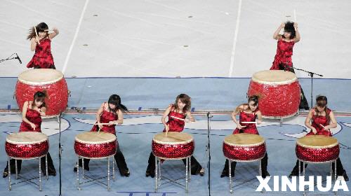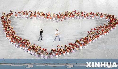 這是在東亞運動會開幕式上,澳門的SOLER歌唱組合在演唱大會會歌。