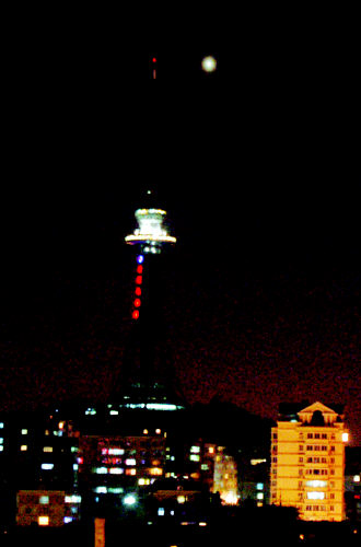 據(jù)目擊者魏先生介紹,他前天傍晚5時50分回到位于寧夏路的家中時,看到電視塔東側(cè)有一個刺眼的白色亮點,因為這個亮點基本不動,而且持續(xù)發(fā)光,魏先生立刻判斷這絕對不是飛機上發(fā)出的光亮,而且這個亮點的體積比空中的星星要大好幾倍!拔以谶@住了19年,第一次看見電視塔旁有這樣一個亮點”,好奇的魏先生趕緊找來望遠鏡觀察,發(fā)現(xiàn)這個亮點居然還拖著個“尾巴”。