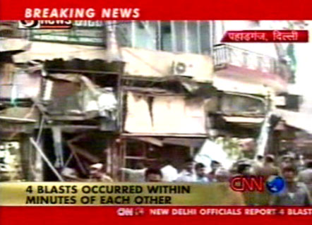 第一次爆炸是當(dāng)?shù)貢r(shí)間17:30(北京時(shí)間20:00)左右發(fā)生于帕哈拉甘(Paharganj)地區(qū)靠近火車(chē)站的熱鬧集市里,市場(chǎng)里擠滿了為印度教傳統(tǒng)節(jié)日購(gòu)物的人群。帕哈拉甘(Paharganj)地區(qū)是一個(gè)批發(fā)市場(chǎng),有許多便宜的小旅館,外國(guó)背包旅行者經(jīng)常光顧此地。當(dāng)局已經(jīng)封鎖了通往爆炸現(xiàn)場(chǎng)的道路。