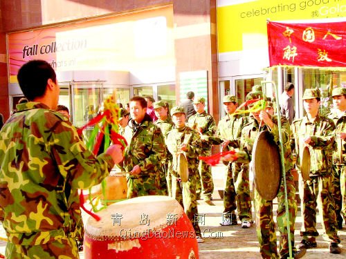 昨天,市南區(qū)政府征兵辦公室在中山路展開征兵宣    傳,為過往群眾講解相關(guān)政策。趙黎攝