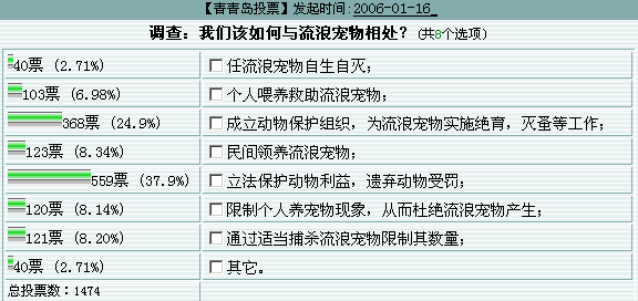 在此次調(diào)查中,37.9%的網(wǎng)友呼吁立法保護(hù)動物利益,遺棄動物受罰;24.9%的網(wǎng)友認(rèn)為應(yīng)成立動物保護(hù)組織,為流浪寵物實(shí)施絕育,滅蚤等工作;