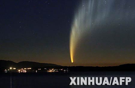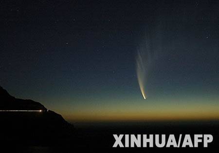 據(jù)智利《三點鐘報》20日報道,以澳大利亞天文學(xué)家羅伯特·麥克諾特命名的麥克諾特彗星日前“飛臨”智利上空。天文學(xué)家說,這是近40年來全球所能觀測到的最亮的一顆彗星,人們平均每百年僅有一至兩次機會可觀測到如此亮度的彗星。